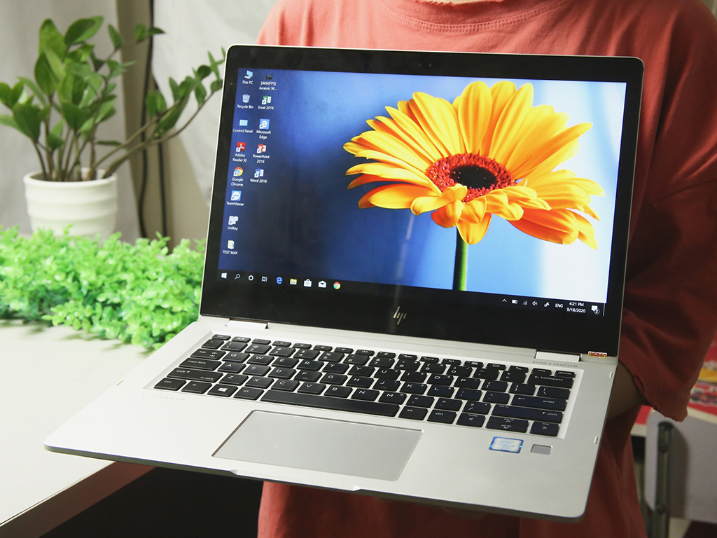Màn hình phủ một lớp Corning Gorilla Glass trên nền Full HD 13,3 inch. Máy đủ sáng với môi trường làm việc, độ chói tạm, màu sắc rõ và độ tương phản tốt. Tóm lại, nó là quá đủ cho công việc Văn phòng thông thường. Đáng buồn thay, HP Elitebook x360 không nhận micro-edge bezel như của Spectre x360. Nói cách khác, trên và dưới bezels hơi lớn - phần trên cùng để chứa hai micrô và webcam HD và phần cuối cùng để giúp giữ thiết bị ở chế độ tablet.